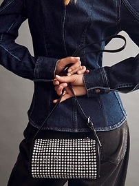 Vegan Leather Rhinestone Barrel Bag