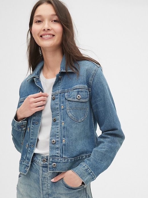 1969 Premium Pleated Icon Denim Jacket with Back Buckle