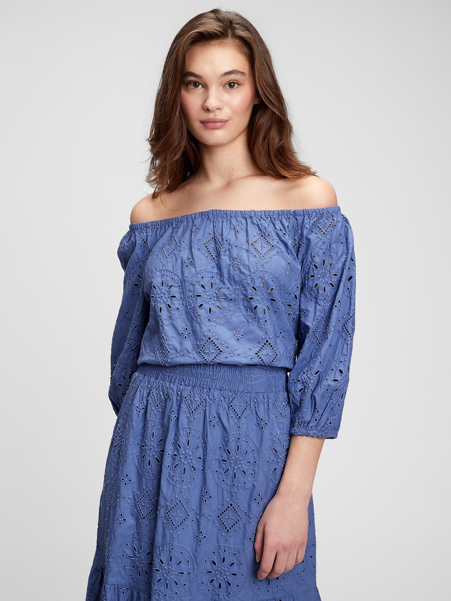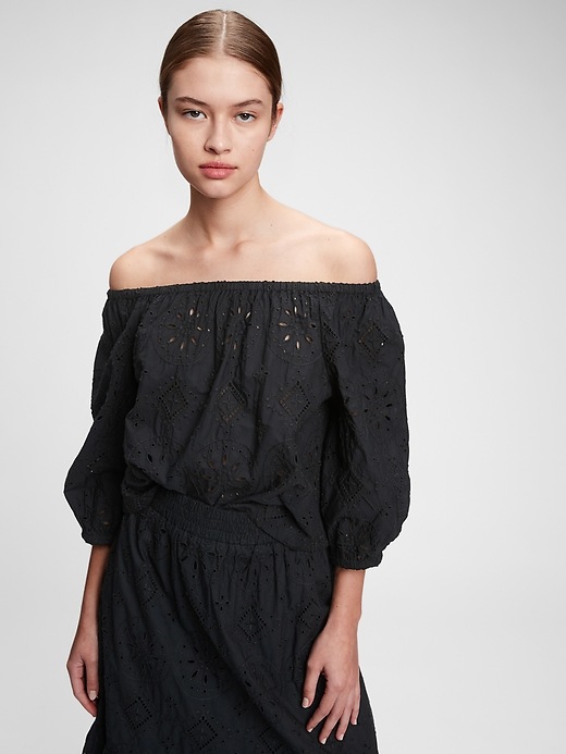 Off-Shoulder Eyelet Top