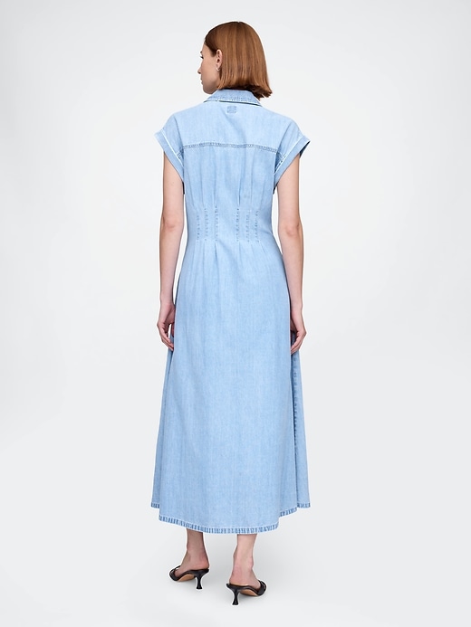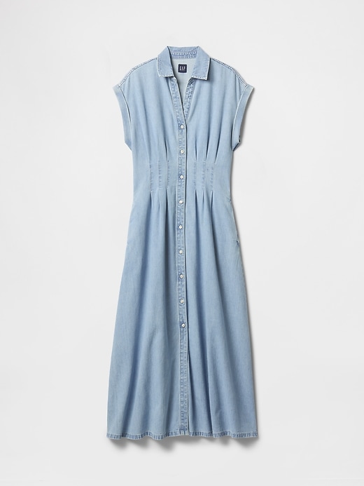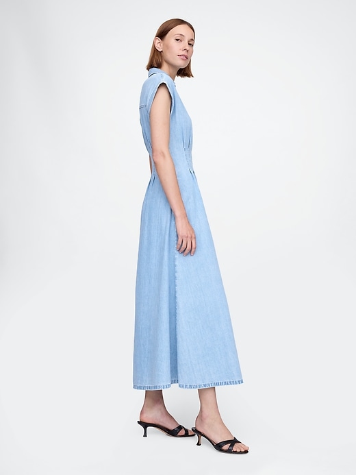 Denim Pleated Maxi Shirtdress