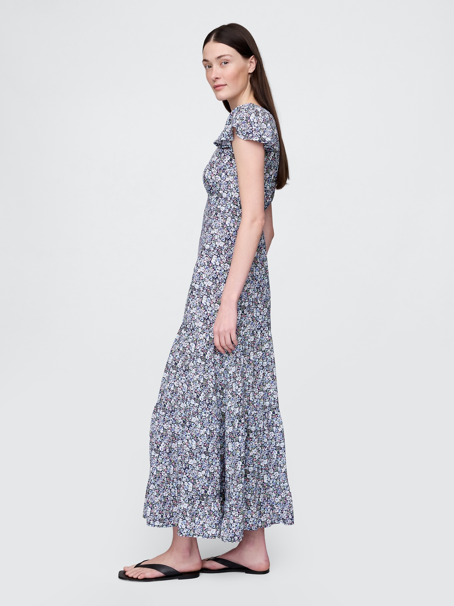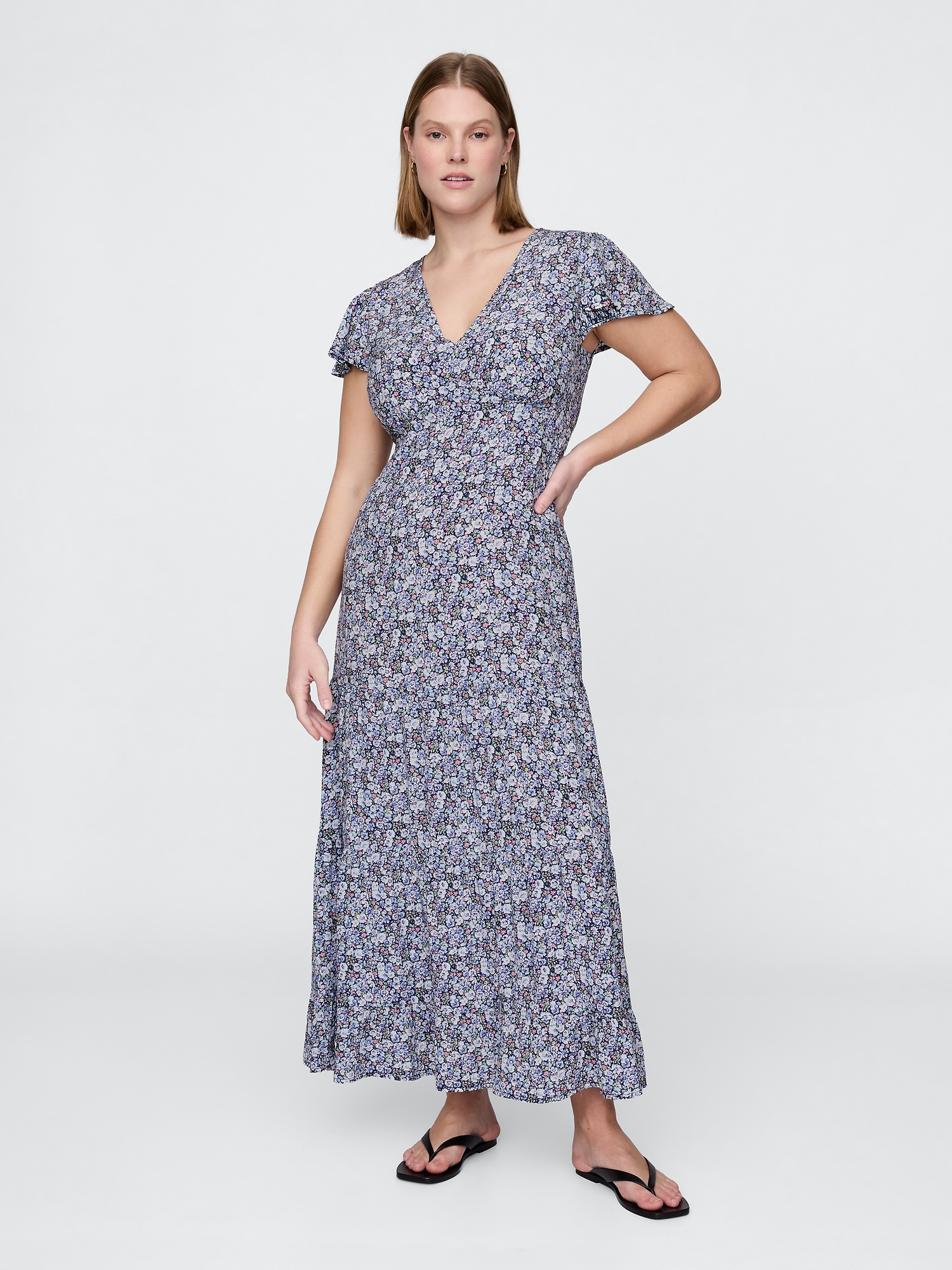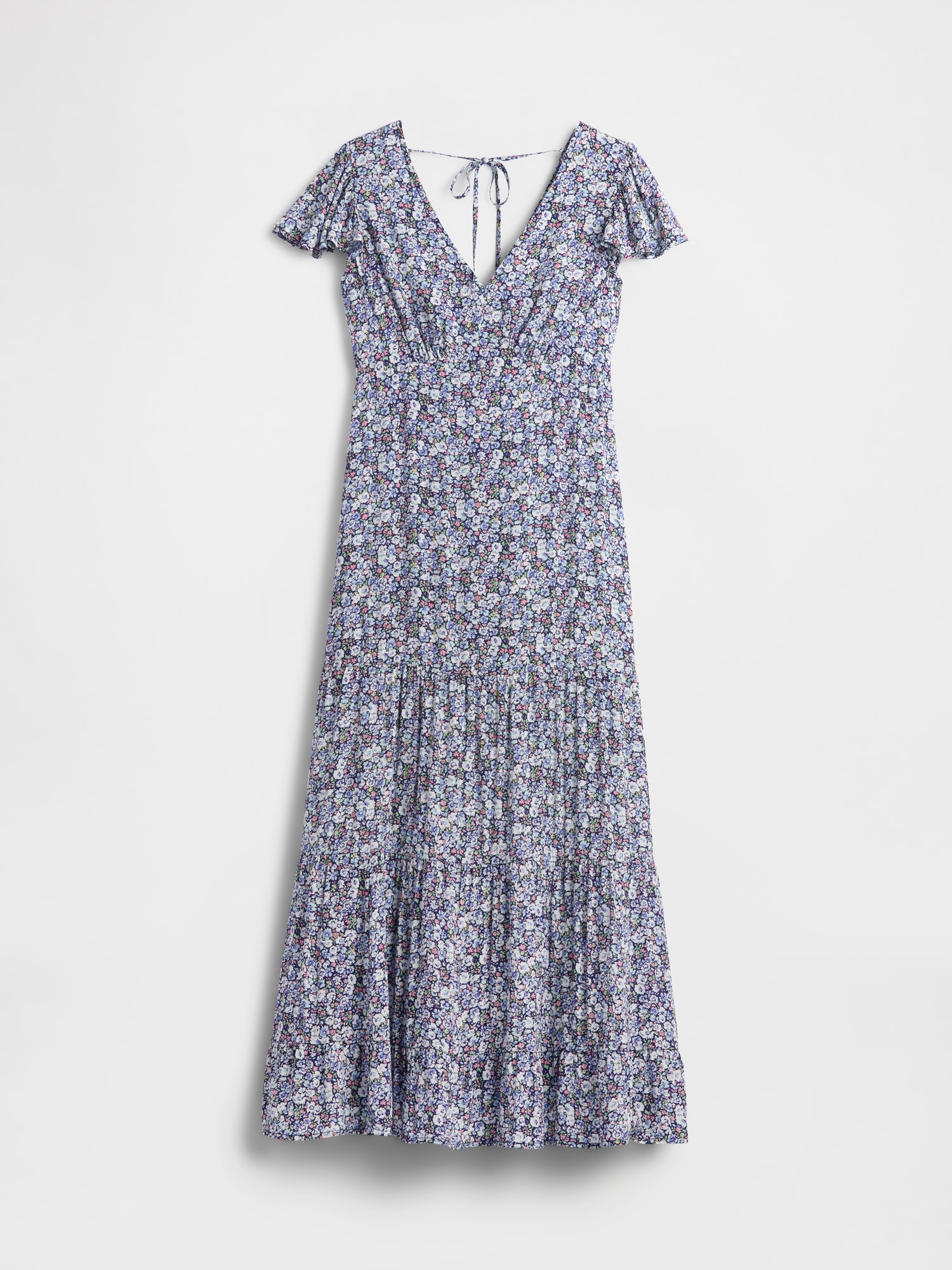 Crepe Tiered V-Neck Maxi Dress