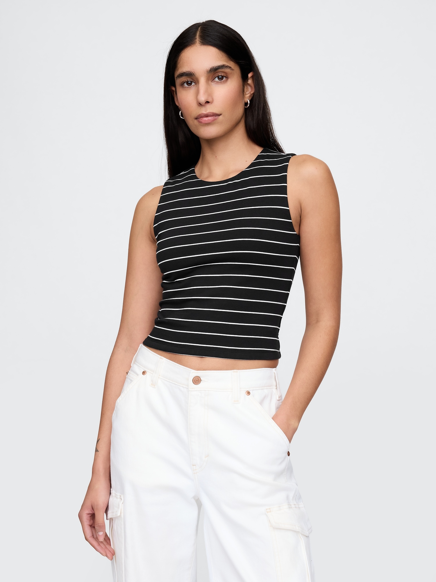 Elevate your wardrobe with our collection of sleeveless fitted tops, designed to offer a sleek and stylish silhouette for any occasion. Perfect for layering or wearing solo, these tops provide a chic foundation for your outfits. Crafted from soft, breathable fabrics, they ensure all-day comfort while accentuating your figure.