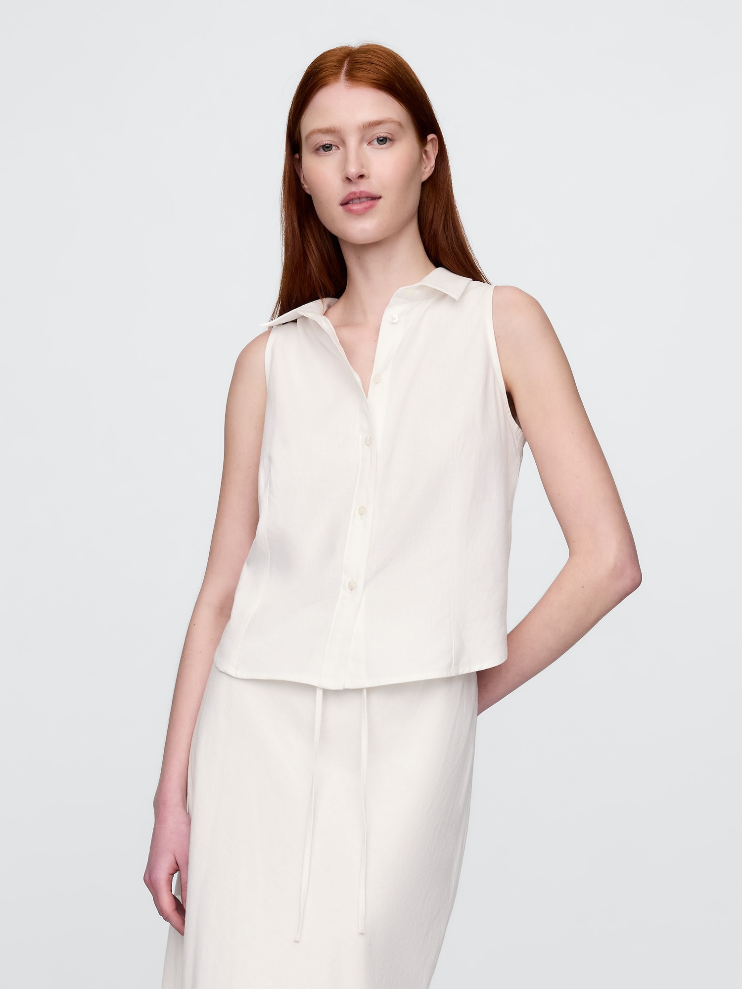 Linen-Blend Crop Shell Tank Top
